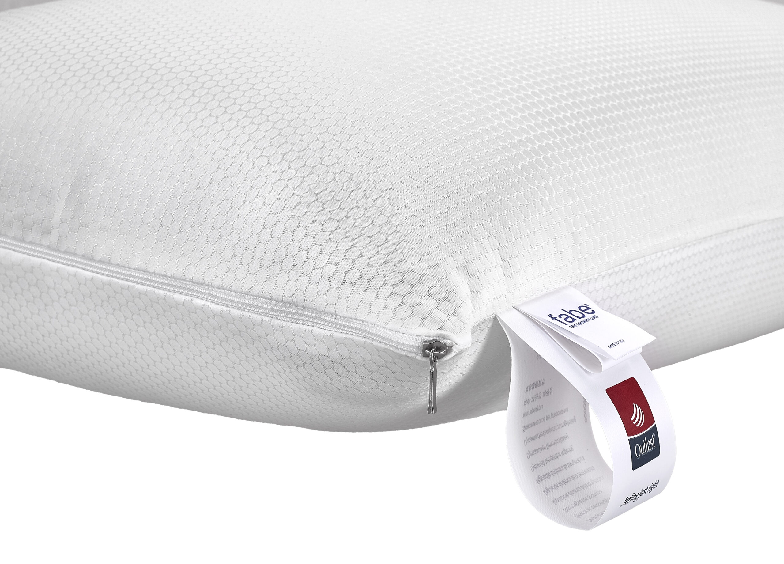 Copricuscino con zip realizzato in tessuto speciale trattato con la tecnologia OUTLAST®, piacevolmente morbido ed avvolgente, imbottito e trapuntato con falda di fibra poliestere ipoallergenica.